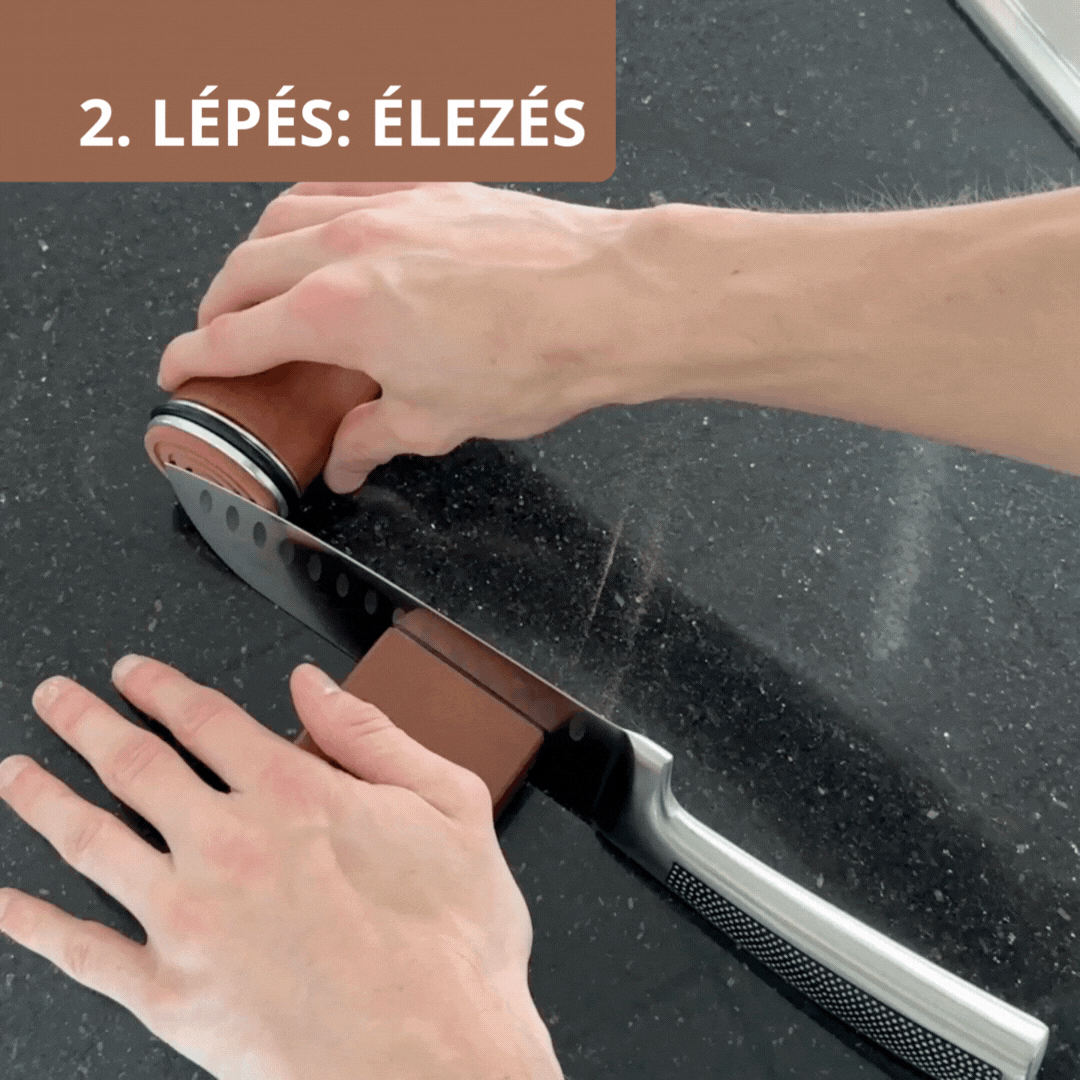 Azonban az állandó, előre beállított élezési szögnek köszönhetően a későbbi újraélezésekhez már csak néhány előre-hátra mozdulatra van szükség.